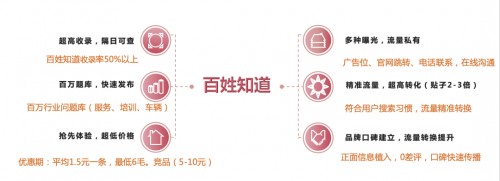 为帮助企业能够获得更多的流量效果,百姓网结合市场反馈及商户需求,抓住知识营销的浪口,正式推出自己的问答营销(口碑营销)平台——百姓知道。