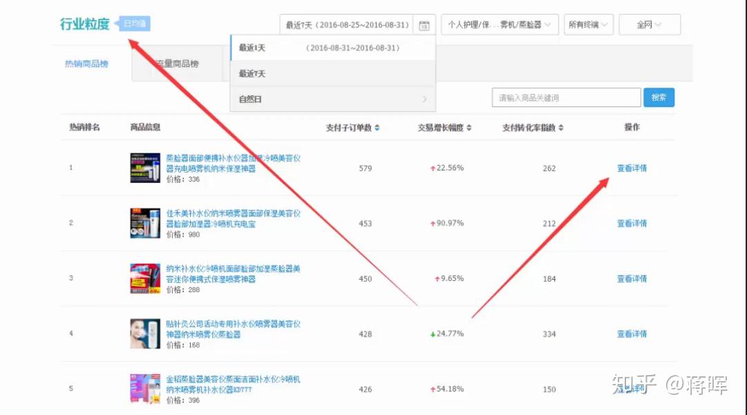 生意参谋→行业粒度→热销商品榜→找到子类目→查看详情