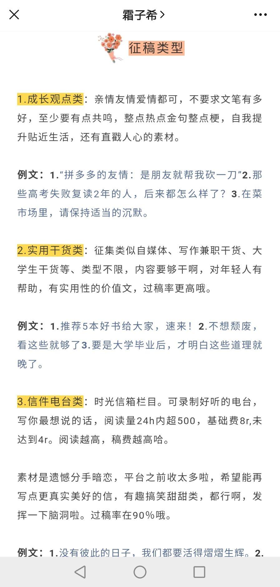 我隔一段时间,就会联系一些征稿平台的号主,或者同类型号主互推征稿涵,我感觉比互推推文效果要好,目前付费就根据平台20~100元左右一期。害,没有办法,为了好好运营公众号,冲鸭!