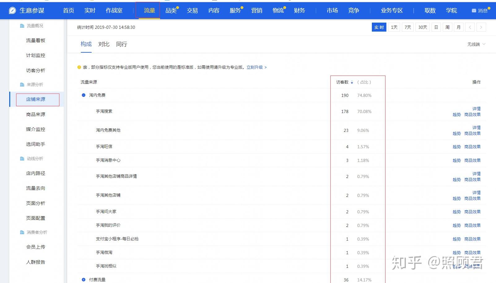 假设你是店铺没有流量,那么我们就先去生意参谋流量板块看看,你是没有哪部分流量。