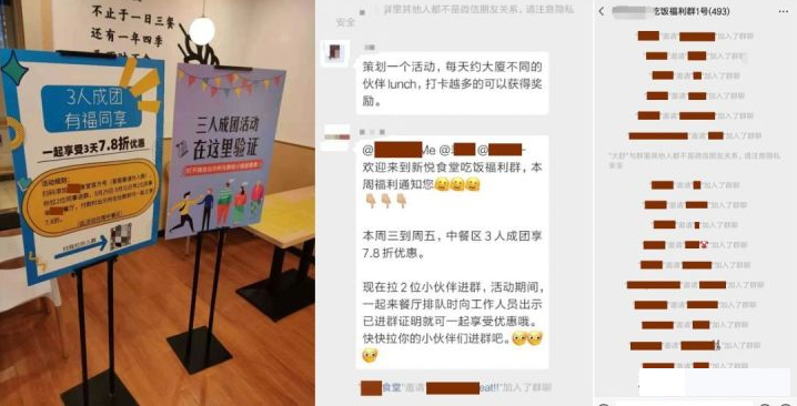 ②在微信群内做活动:3人成团享工作餐7.5折,活动持续3天。