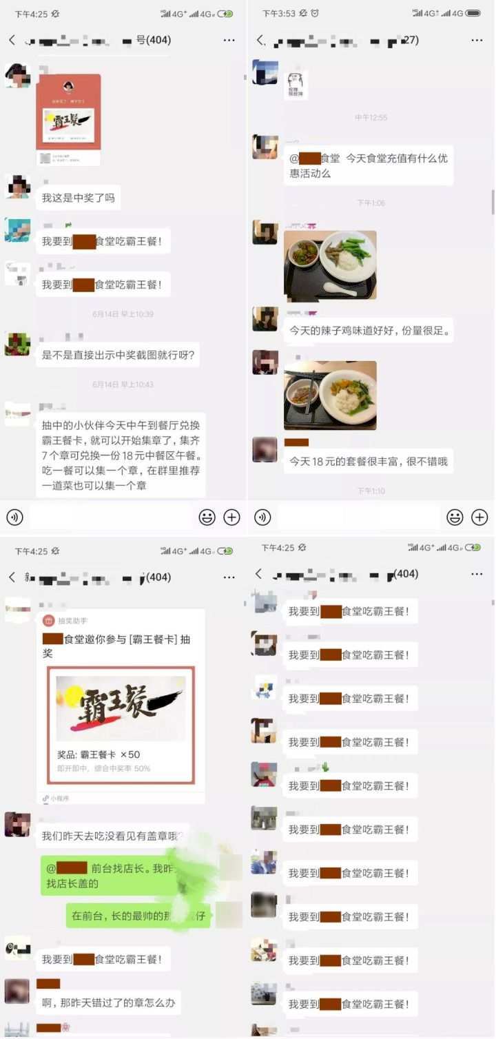 ①3天活动期间,每天上午在微信群发起“抢霸王餐卡”活动,集齐一定数量卡片可免费兑换“午餐免单”权限,用抽奖助手小程序即可实现,注意每天限量,制造哄抢氛围,有氛围才能促活。