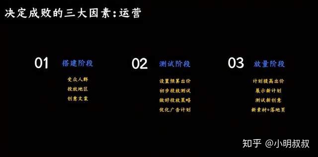 在确定了落地页,产品规格和视频之后,就到了账户投放的阶段。一般来讲投放都有以下3个阶段: