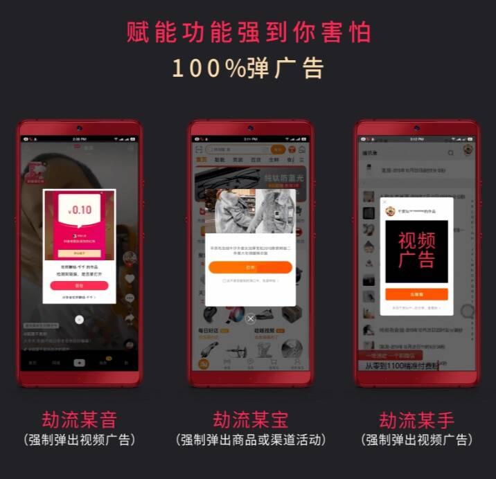 2020年一款可以将收款二维码等线下附近精准人群整合并快速引入抖音、快手及各大短视频、淘宝等热门平台的引流营销工具诞生了。【劫流】强制某音某手某宝等热门平台弹广告,为商家引流,把不可能变成可能,已经被广泛应用在各个领域。