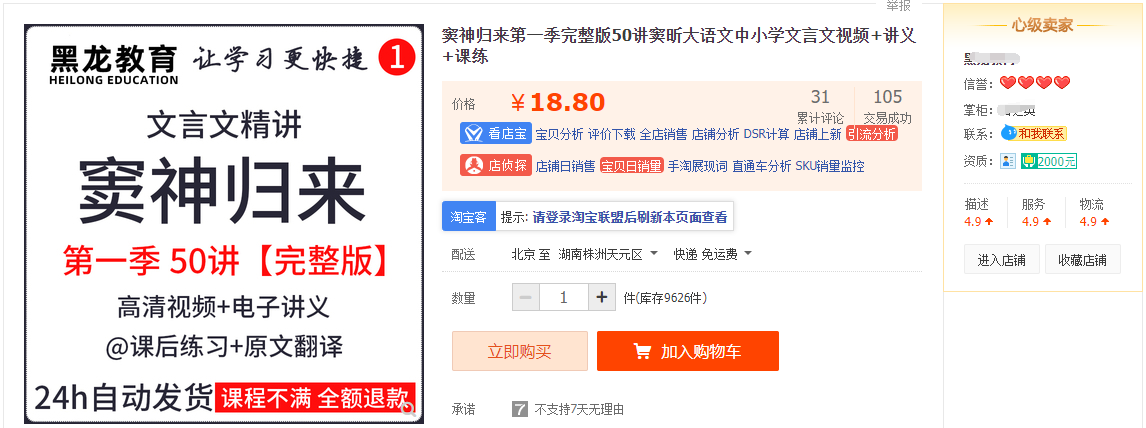 优势:产品成为为0,每卖一单都是纯利润,而且出单快、即使是新店也能快速的出单,你像下面这个店铺信誉才4个心,明显就是一个新开的店,而且其中的一款宝贝,卖了的收益就差不多2000了,像这样虚拟店铺,操作的好,一个月达到个3000-5000是没有问题的。