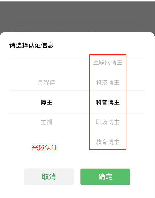 业中级以上职称证书认定;兴趣认证要求在对应领域持续发表原创内容,且微信视频号或公众号关注数 10 万以上,微信外平台要求 100 万以上。