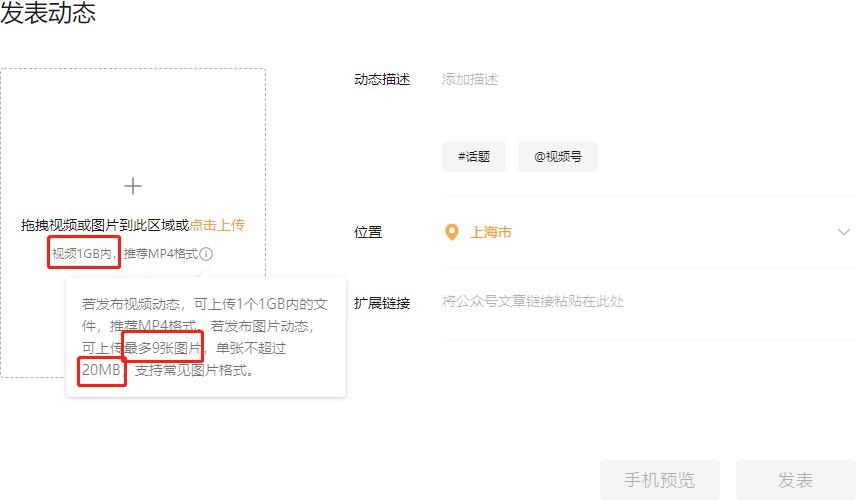 (1)视频大小、格式 1GB 以内,推荐 MP4;