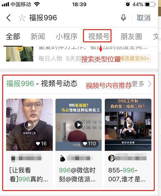 视频号在搜索框输入关键词,可以看到系统推荐的视频号和相关主题的视频。