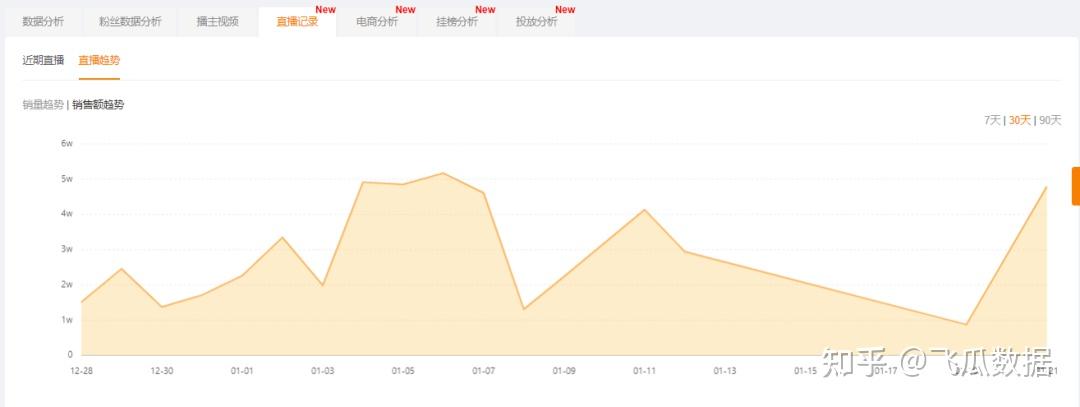 同样,除了拍摄视频作品以外,圆圆也会定期进行直播带货。带货销售额基本维持在4w左右,在这个粉丝量级算是偏少的,不过圆圆主要还是以视频内容输出为主,直播带货为辅。
