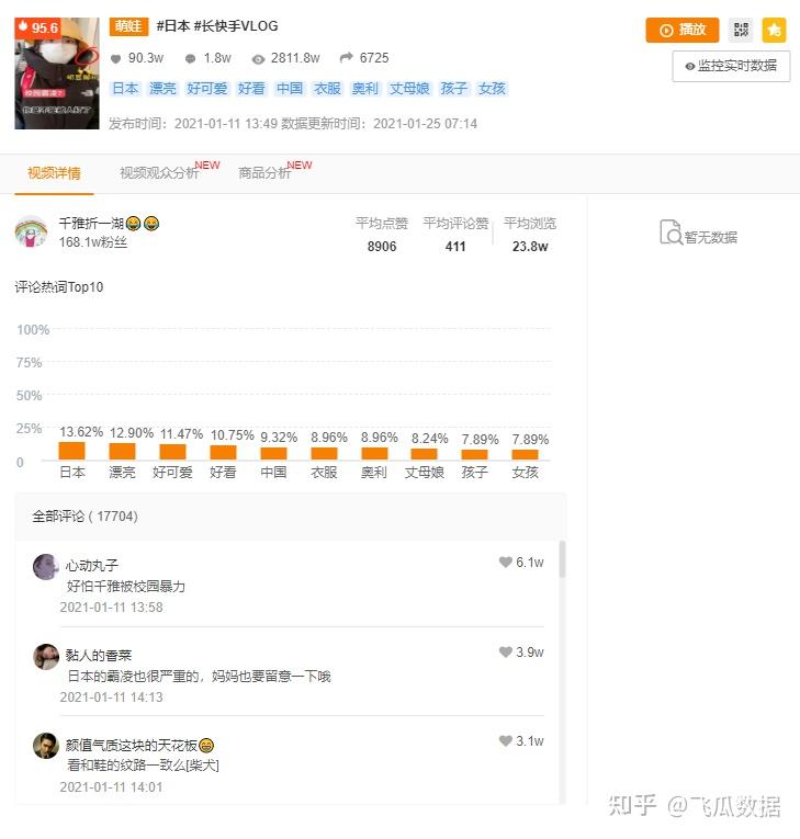 从飞瓜的视频记录来看,这主要是源于1月11日播主发布了一条疑似千雅被“霸凌”的视频。