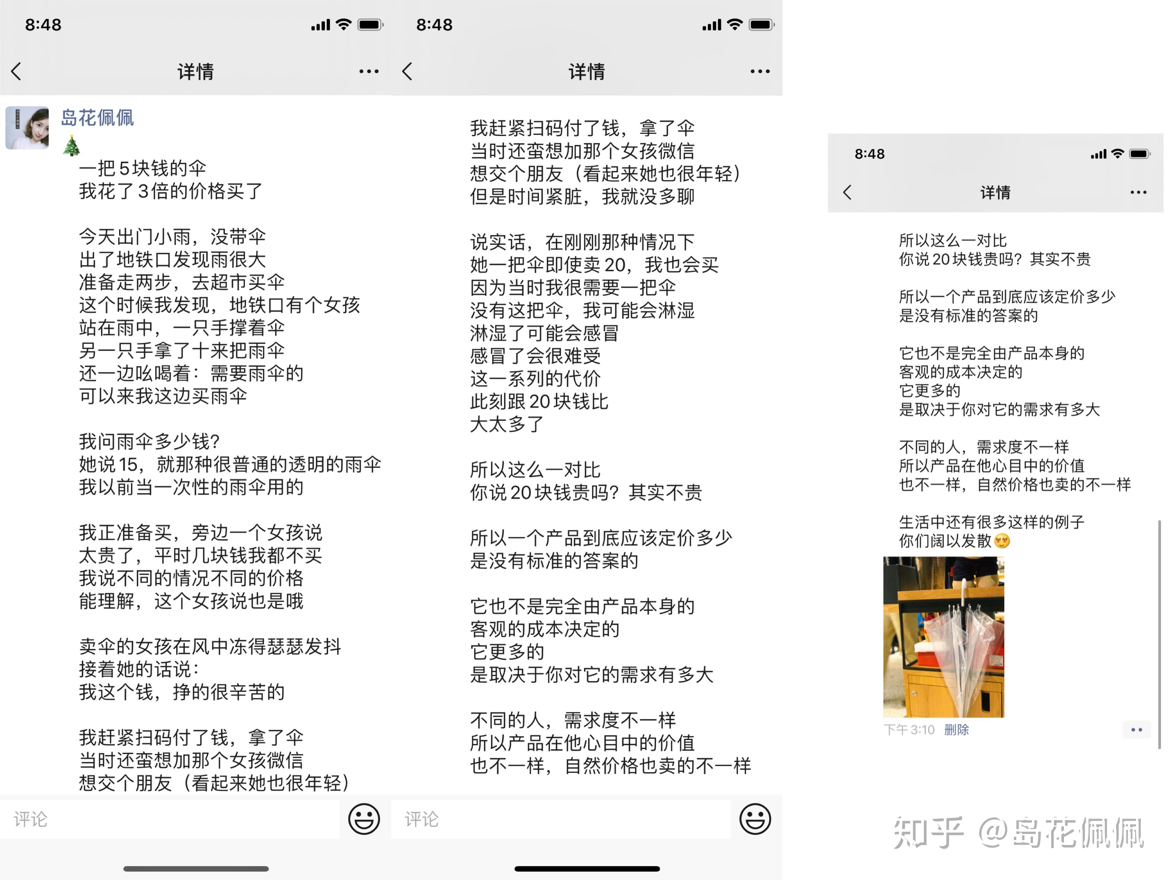 像岛花:我朋友圈有很多粉丝是因为对营销感兴趣才认识我的,他们想看营销的内容,所以我经常会在朋友圈发一些营销干货、心得、感悟。