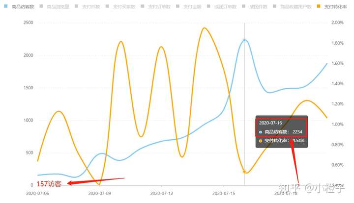7月6日只有157个访客,到了7月16日,10天时间,访客数直升2234访客,如上图。