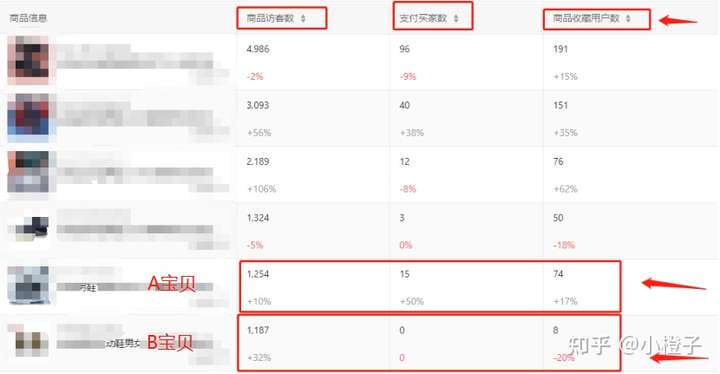 举例:AB宝贝访客数是非常相近的,但A宝贝转化了15单,收藏用户74个,而B宝贝同比转化0单,收藏用户8个。很明显A宝贝要比B宝贝更有潜力打造成为爆款的。