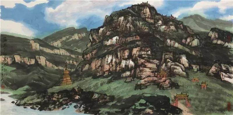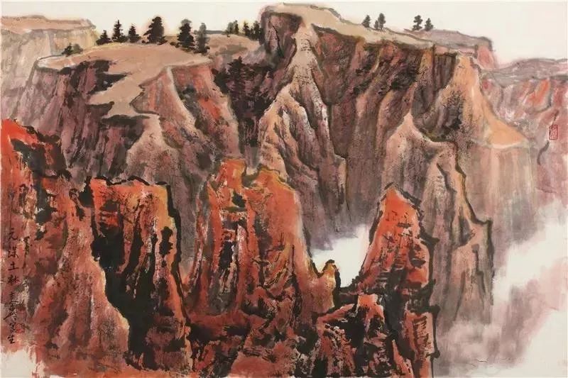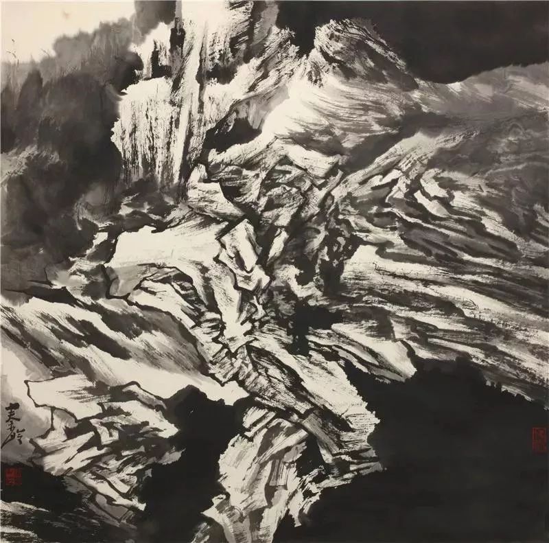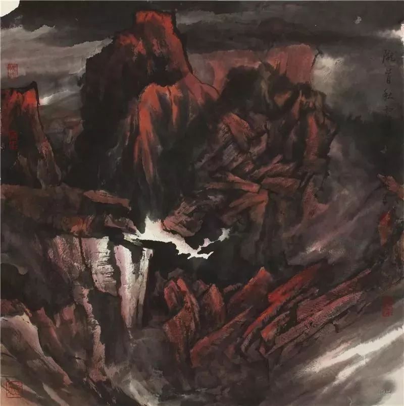 秦岭的画虽然也有阴柔之气,但主要是阳刚之气。这表现为其画作的形象不仅阔大,而且雄壮,有一种发于自身而充塞天地的气势。当然,画作的山水之气在根本上来源于人的心灵之气,而这又来源于人自身的生存之气和他所经验的世界之气。