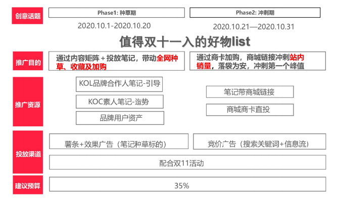 (1)前期:10.1—10.20期间通过投放笔记种草带动全国加购。