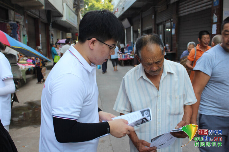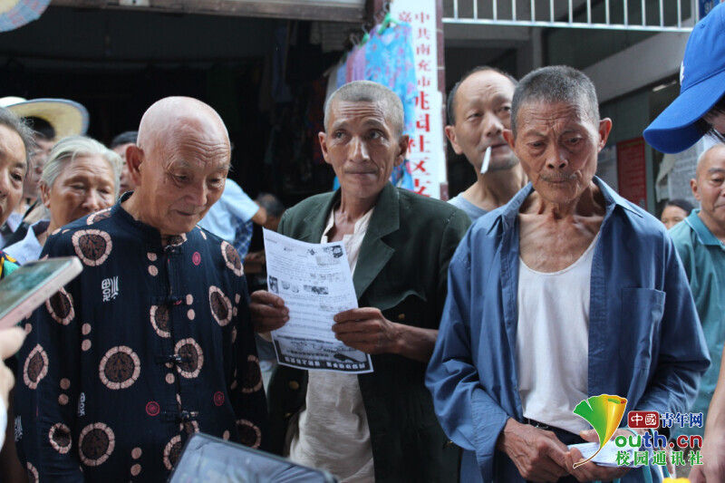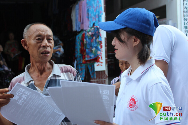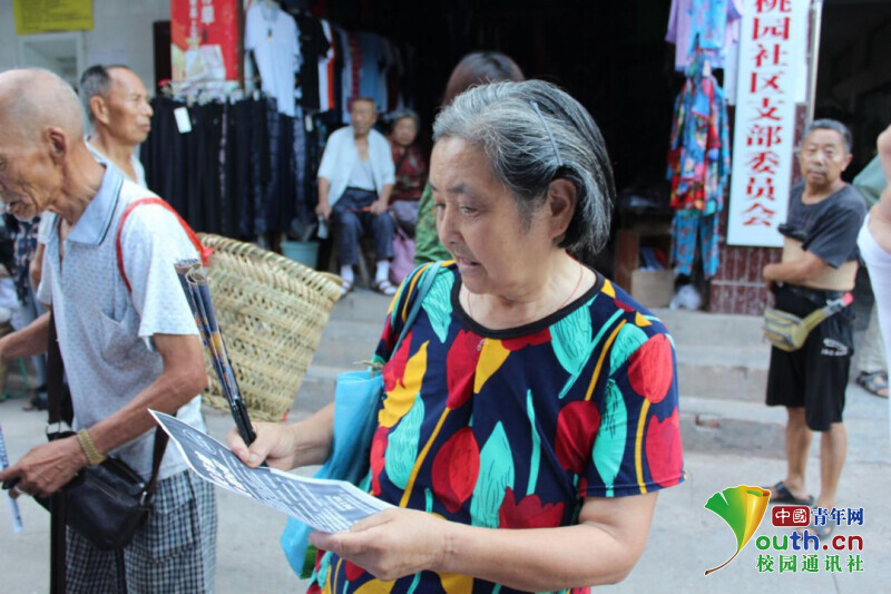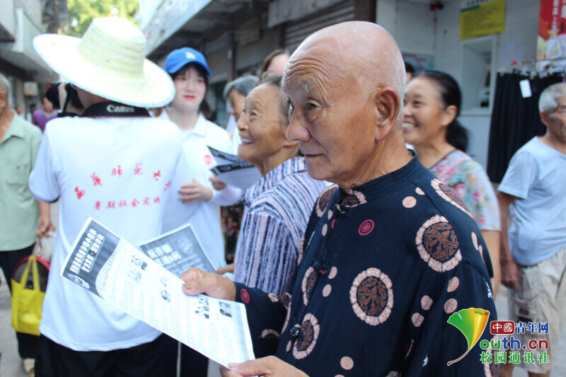 为团队队员向老人科普防电信诈骗知识。中国青年网通讯员 王乐平 摄