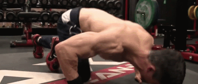俯卧撑是一个锻炼上半身的黄金动作,不过这个动作并没有得到很多人的重视,而且把它认为是菜鸟级别的健身动作,宁愿去做健身房的器械训练,也不愿意花时间去做俯卧撑。其实俯卧撑能够有效的促进肌肉的增长,可以刺激到我们的胸大肌、手臂的肱三头肌以、肩部的三角肌以及核心肌群等,能够有效的帮助我们达到强身健体的效果。俯卧撑也是部队的常规训练动作之一。