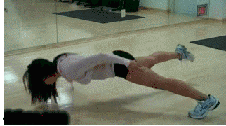 4、提膝俯卧撑:做标准俯卧撑的时候,交替左右提膝,提膝在身体两侧,而不是在身体下方,也叫“壁虎俯卧撑”。