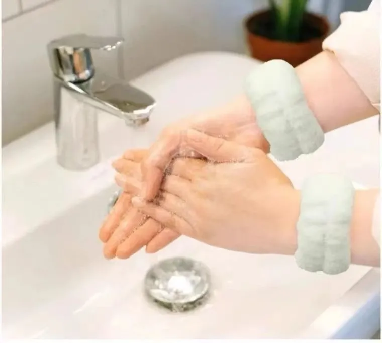 买一个洗脸用的腕带,可以避免把衣服打湿。