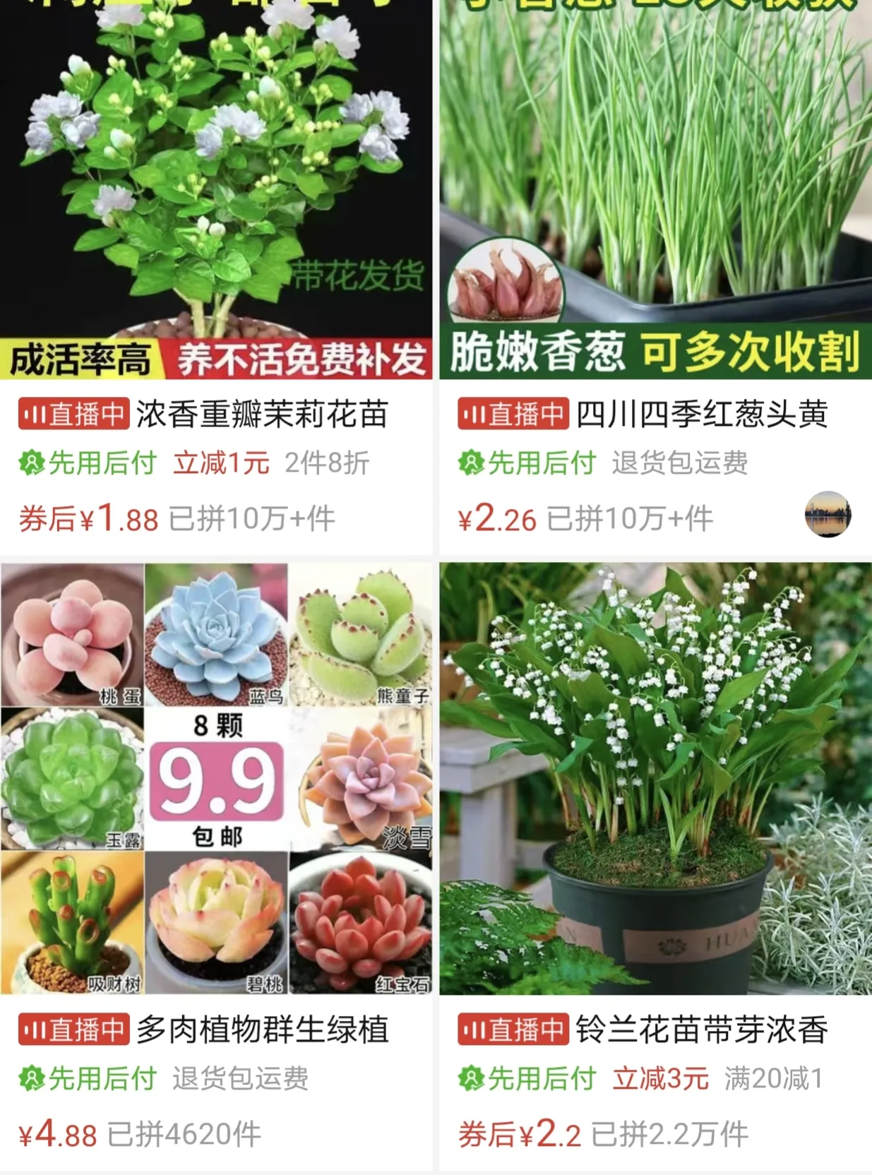 平时喜欢养花花草草的,在这上面买就真的很便宜,很好,我在上面买过绣球花,怜香花,月季,阿西木,吊兰,绿萝,茉莉花,拿回家都养活了,价格真的便宜到让我惊讶