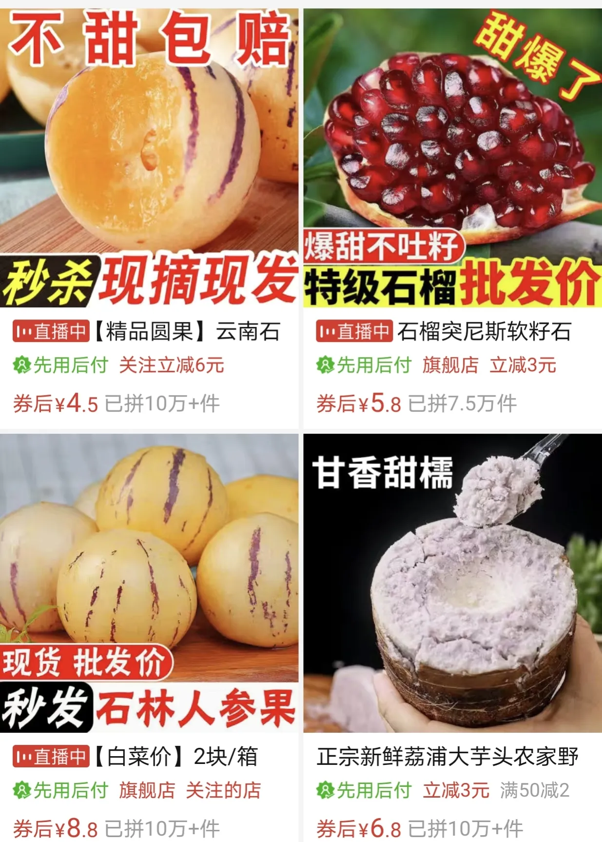 当时就是靠农产品起家的,很多是产地直发,减少了中间商赚差价,我买的菠萝蜜,榴莲,人参果,比在实体店买要便宜至少一半,更新鲜,只要自己会挑,肯定能挑出好的水果来。