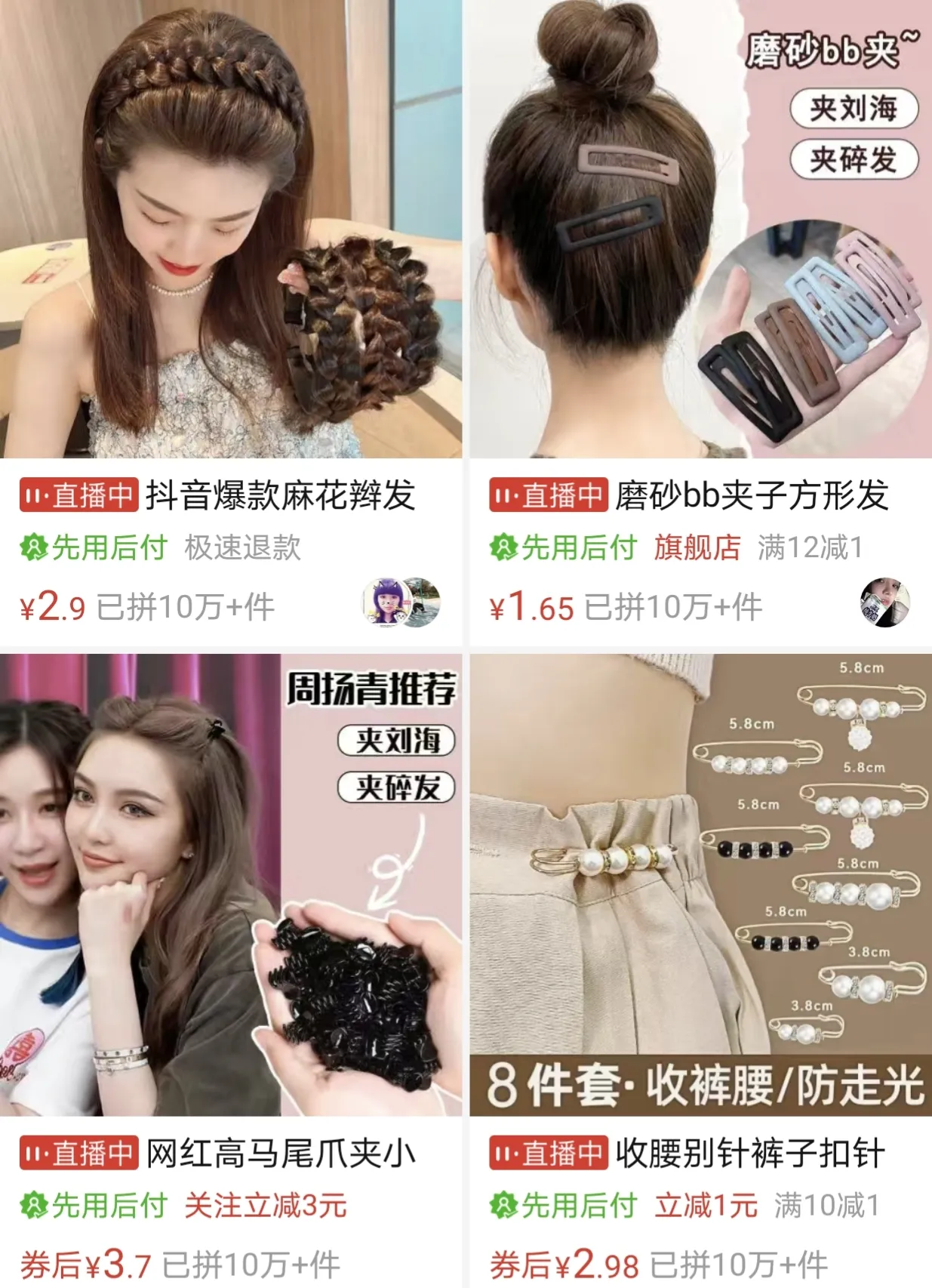 女生平时喜欢买的头绳,各种好看的耳饰耳夹,几块钱可以买到,用一年用不完。